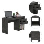 The Maui Two-Drawer Desk is perfect for small spaces. It’s complete and compact with two drawers and an open compartment, making it the ideal desk for your home office or bedroom. The sleek and simple design makes it easy to match any existing furniture, and the two drawers provide ample storage space for all of your office supplies. Whether you’re looking for a new desk for your home office or need a designated area to get work done, the Maui Two Drawer Desk is the perfect solution. Work surface (47,2” W X 17,9”D)Designed with elegant smokey oak, black wengue, and light gray manufactured wood finish.