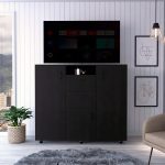 it comes with a wall anchor to prevent tipping over. Designed with elegant black wengue manufactured wood finish.