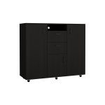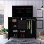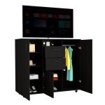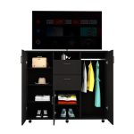 Milano Double-Door Cabinet Dresser, bringing not only a modern design to any room but also adds useful storage. It also includes two spacious drawers (9.7″ H x 18.2″W) will provide plenty of room, the two cabinets bring 4 interior shelves for your bags, hats, or shoes and the other side comes with a hanging rod for your clothes, and the display top (55.1W x 20.2 D) allows your decorative items, plants, picture frames or even a Flat TV.