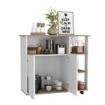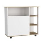 St. Thomas Kitchen Cart is the perfect fit for all spaces, it brings functionality and modern style to your kitchen space. It features Four Casters with a locking mechanism, One Cabinet with one big shelf (24,8″ width X 15″ depth X 21″ height), Four open shelves, and a Countertop. Designed with elegant Light Oak / White manufactured wood finish.